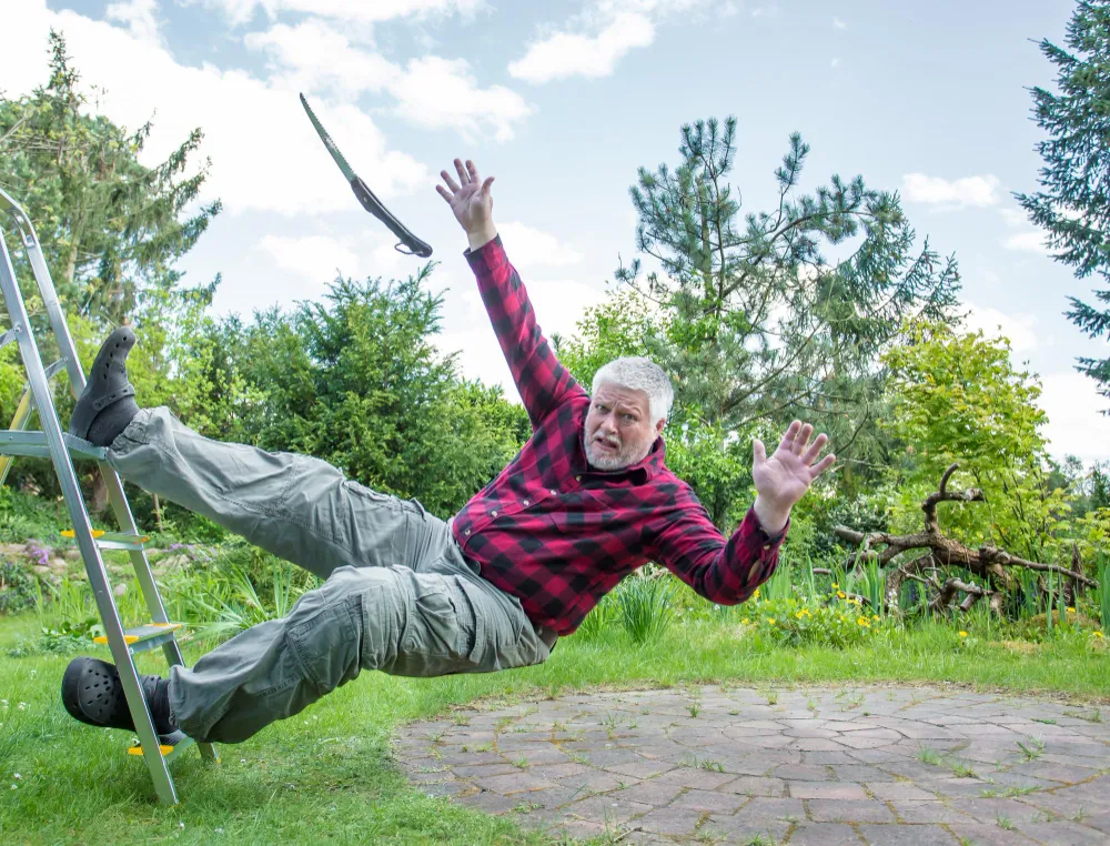 Keep walkways clear. Remove leaves, branches, hoses, tools. Sweep regularly.
